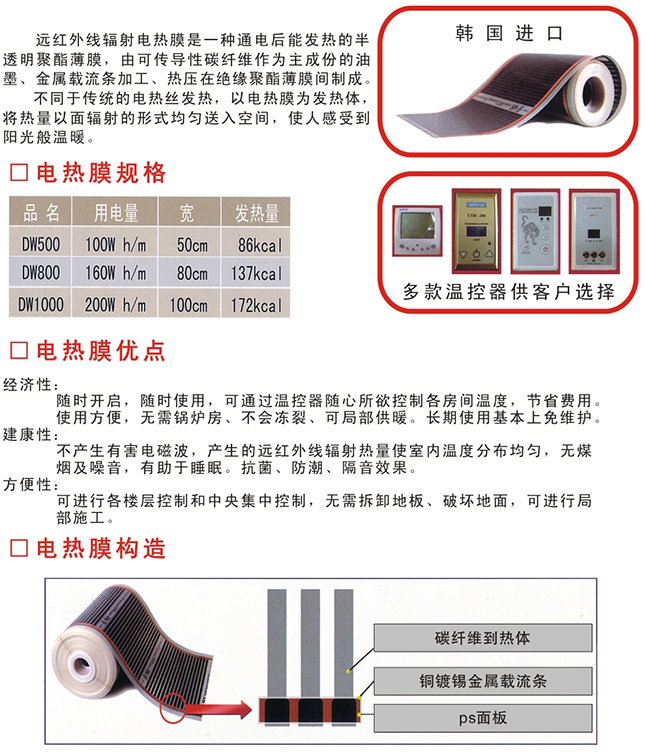1、韓國遠紅外碳纖維電地熱/遠紅外線碳纖維電熱膜地板供暖